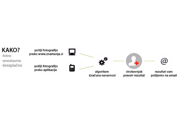 Za zdravje vaše kože smo razvili mobilno aplikacijo Znamenja.si, s katero sami fotografirate svoja potencialno nevarno ali nenevarno kožno znamenje oz. spremembo (znamenja, izrastki, rdečice, brazgotine, kožne tvorbe,…). S pomočjo aplikacije vaše fotografije pošljete v pregled zdravniku dermatologu ali plastičnemu kirurgu. Za tem prejmete oceno stopnje nevarnosti.
